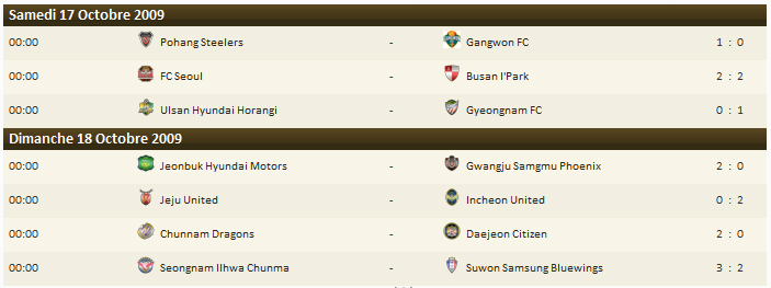 Résultats et classement sont également à consulter ici alors que les vidéos de la 28e journée de K-league sont à ici.