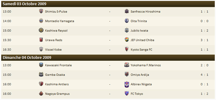Ce qu'il faut retenir : Avec une série de contre-performances telle que celle de Kashima, il était évident que cela finirait par arriver. 2 défaites dans la semaine, dont une en match en retard contre les Frontale (2-3), et voila que les Antlers ne sont plus leader de la J-league, fauteuil qu’ils occupaient depuis la 8e journée !! Les heureux bénéficiaires sont les Shimizu S-Pulse et leur impressionnante série de 12 matchs sans défaite. Un match nul ce week-end devant Hiroshima permet aux Oranges de prendre la première place. Mais rien n’est joué pour autant. A 6 matchs de la fin, ils sont 5 à se tenir en 4 points. Les Frontale ont ainsi glané 6 points en 4 jours après leur succès devant les Marinos, Gamba s’est largement imposé chez lui devant Omiya et l’Albirex Niigata, en faisant chuter les Antlers chez eux, montrent également l’étendue de leurs ambitions. La lutte sera donc intense en haut de tableau alors que celle pour la relégation pourrait ne plus concerner Oita, qui bien qu’il ne perd quasiment plus, accumule les matchs nuls et doit remonter 13 points pour espérer se sauver (tout en sachant qu’il n’en reste que 18 à prendre). Pour JEF United, l’affaire parait compliquée également : la défaite à Urawa place Chiba à 9 points du premier non relégable Montedio. Reste ainsi les Kashiwa Reysol, battus chez eux par Iwata, les Reysol doivent combler un écart de 5 point pour espérer se sauver.