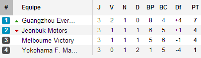 Le groupe G est celui de l’ogre Guangzhou. Invaincus, les Evergrande dominent le groupe devant Jeonbuk, avec qui ils étaient déjà sortis du groupe F l’an passé. Attention cependant car, comme dans le groupe E, les australiens du Melbourne Victory sont encore en course après leur succès obtenu face aux Marinos.