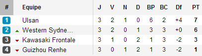 Finalement, la seule déception côté chinois est dans le groupe H où Guizhou est déjà quasiment éliminé. Derniers avec un seul point, les hommes de Gong Lei devront espérer un miracle pour se qualifier. Pire, en accueillant le leader du groupe, champion 2012, Ulsan cette semaine, les chinois pourraient être déjà éliminés en cas de défaite. Parfum de finale de groupe également dans l’autre rencontre de la semaine puisque les Western Sydney Wanderers pourraient décrocher la qualification en cas de victoire sur la pelouse des Kawasaki Frontale.