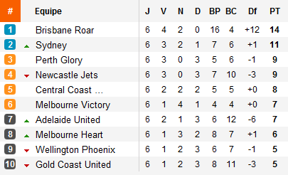 Seuls car l’autre perdant du week-end se nomme Newcastle, balayé à Melbourne par des Heart qui décrochent leur premier succès de la saison.