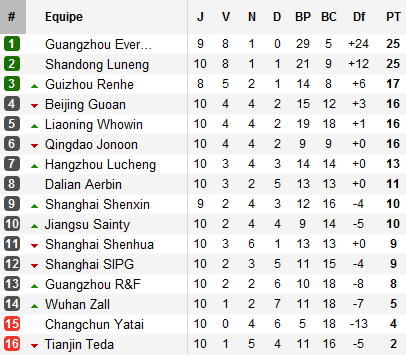 Derrière l’orge Evergrande, Shandong continue de s’accrocher. Au point que les deux leaders commencent à creuser des écarts conséquents.