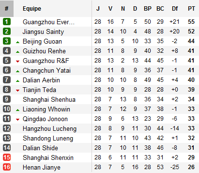 En queue de classement, si l’autre club de Shanghai peut reprendre espoir dans la course au maintien après son convaincant succès à Dalian, la messe semble dite pour Henan qui arrache le nul à Tianjin mais se retrouve à cinq points du maintien quand il n’en reste plus que six à prendre. Reste que de Liaoning (dixième) à Shanghai premier relégable, ils sont encore six à devoir éviter tout relâchement sous peine de relégation.