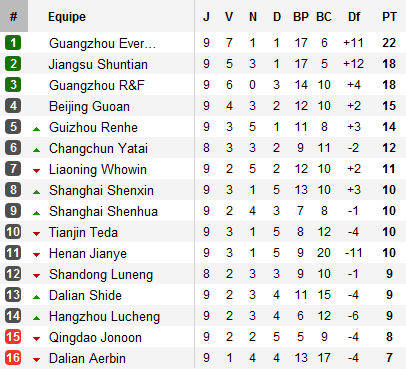 Pendant que Jiangsu tombait sur la pelouse de Guizhou Renhe malgré le septième but en neuf rencontres de Cristian Dănălache et que les Argenlic s’effondraient à Shanghai face au Shenxin, le leader profitait de la neuvième journée pour prendre quatre points d’avance en tête du classement en dominant Dalian Aerbin, bon dernier de la Super League.