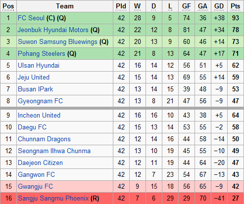 Le verdict est tombé au soir de la 41e journée : en s’imposant sur la plus petite des marges à domicile devant Jeju, Séoul saisissait parfaitement l’occasion donnée par Jeonbuk de lui succéder au palmarès. Chez eux, les verts avaient en effet été contraints au nul par le nouveau champion d’Asie Ulsan.
