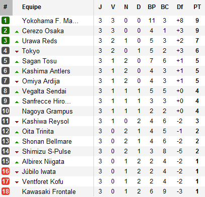 Après deux cartons pour débuter (4-2 à domicile devant Shonan Bellmare et surtout le 5-0 à Shimizu), les Marinos ont enfin calmé le jeu lors de la troisième journée. Une victoire à l’arrachée face au Júbilo Iwata (2-1) synonyme tout de même de parcours parfait. Après deux belles saisons, Yokohama semble parti pour poursuivre dans la régularité.
