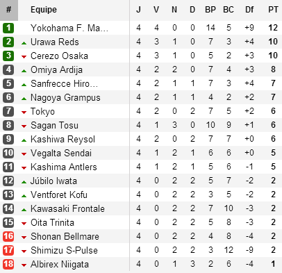 Après trois journées de J-league, Marinos et Cerezo se disputaient la première place dans un duel de sans-faute. La quatrième journée en aura vu un trébucher.