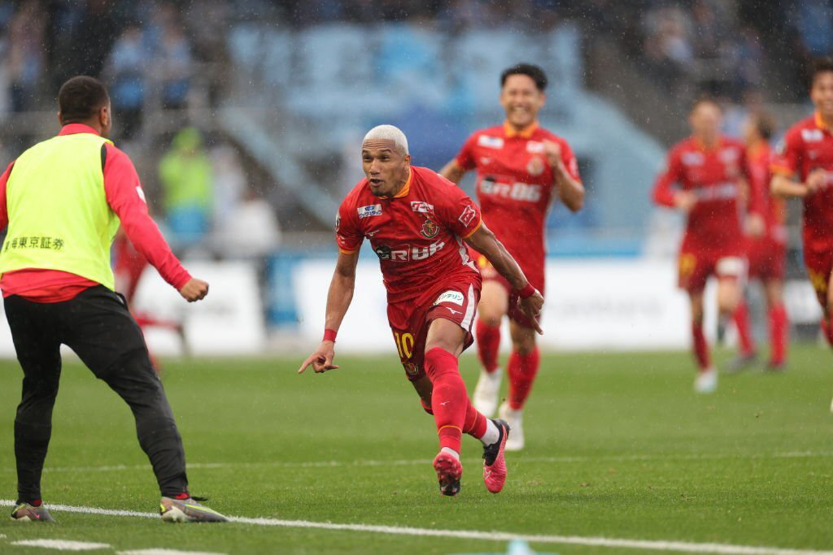 Nous sommes dans les arrêts de jeu de la première mi-temps au Stade Todoroki de Kawasaki Frontale. Nagoya Grampus mène déjà au score après la quatrième réalisation de la saison de Kasper Junker à la suite d’un contre éclair mené par Kensuke Nagai. Les orques dominent leur élément et Matheus, aux vingt mètres, à un coup franc côté gauche à bonifier pour mettre un peu plus dans le dur des dauphins timorés et sans imagination. On connait la frappe légendaire de l’ailier droit brésilien, pourvoyeuse d’offrandes et d’ogives, qui martyrise les gants des portiers de J1 et J2 depuis 2015 et qui a trouvé les filets à huit reprises sur coup franc direct durant sa carrière nippone. Il choisit cette fois une frappe flottante qui prend la direction de la lucarne de Jung Sung-ryong, seulement capable de toucher la balle une fois la ligne de but franchie. Il pouvait exulter en ouvrant son compteur buts en 2023 pour sa cinquième saison au club, d’autant plus qu’il s’agit du but de la victoire bien que Taisei Miyashiro avait réduit l’écart (1-2). Les hommes de Kenta Hasegawa confortent leur place sur le podium tandis que ceux de Toru Oniki en sont bien loin désormais.