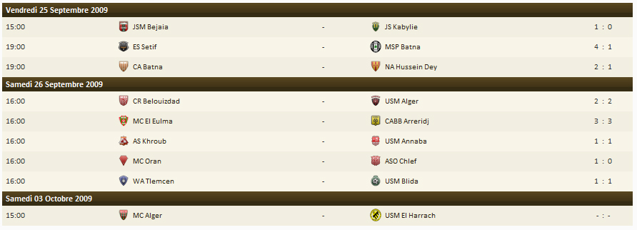 Ce qu'il faut retenir : Devant un trop grand nombre de derbys à disputer à Alger et le manque de stade pouvant accueillir ces derbys, la ligue algérienne a décidé de reporter le choc au sommet opposant le MC Alger, leader, à son poursuivant direct l’USM El Harrach. Au lieu de ce choc, la 7e journée algérienne nous a donc offert le duel spectaculaire entre USM Alger et le CR Belouizdad qui s’est terminé sur un final fou débouchant sur un match nul (2-2). La bonne affaire est pour le CABBA et le WA Tlemcen qui a ramenant respectivement 1 point de la pelouse du MC El Eulma et 3 points devant Blida, reviennent au contact des deux leaders. Derrière, l’ES Sétif et son nouvel entraîneur intérimaire Ali Mechiche, décrochent leur premier succès de la saison en écrasant le MSP Batna (4-1). Enfin, le JSM Bejaïa remporte son premier match de la saison devant la JS Kabylie, pour le derby de kabylie et abandonne sa place de lanterne rouge au NA Hussein Dey.