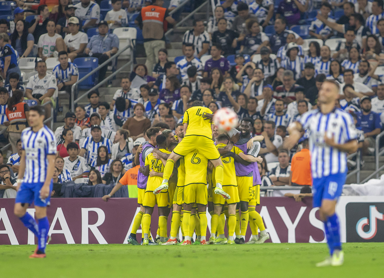 Il y avait eu le Volcán avec un but concédé d’entrée sur une erreur de Patrick Schulte puis un match de patron. Il y aura le Gigante de Acero et son but d’entrée de partie sur un coup de pas de chance de Yevhen Cheberko, trompé par le rebond d’un lob de Maxi Meza sur la barre. Mais comme face à Tigres, Columbus n’a pas flanché. Les Rayados étaient devant et semblaient contrôler le premier acte de cette demi-finale retour, bien aidés par le fait d’avoir pris la tête, même s’il fallait attendre la 45e minute pour que les Rayados s’offre un premier corner, symbole d’une légère domination ne se transformant donc pas en véritable danger pour les hommes de Wilfried Nancy, à l’exception d’une tête de Luis Romo qui frôlait la barre et d’une frappe lointaine de Jesús Gallardo. Le Crew gérait son match, avait finalement la possession et profitait de la moindre occasion d’aller exercer sa pression haute. Sur un dernier corner, Columbus restait installé dans les trente mètres des Rayados. Et déclenchait l’erreur. Esteban Andrada voulait relancer vite, oubliant le surnombre dans la zone des joueurs en jaune, Aidan Morris surgissait et interceptait. Au bout de sa course, le prince du Crew égalisait. Le match avait tourné. Car à la pause, Nancy abattait une nouvelle carte : Alexandru Mățan entrait à la place de Marino Hinestroza et l’effet était immédiat. Le meneur roumain était décalé entre les lignes après une séquence de conservation, il s’avançait et offrait à Diego Rossi le but du 2-1. Les Rayados étaient assommés, il leur fallait alors trois buts pour se qualifier. Monterrey se procurait bien quelques situations – assez rares tout de même – mais rien ne changeait, jusqu’à une sortie hasardeuse d’Andrada face à un Jacen Russel-Rowe une fois encore lancé plein axe. Le jeune attaquant du Crew éliminait l’ancien de Boca et marquait dans le but vide. Jamais depuis 2016 les Rayados n’avaient perdu chez eux en CONCAChampions, après Tigres, Columbus fait tomber l’autre géant de Monterrey et décroche sa première finale continentale.