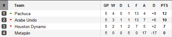 Les mexicains de Pachuca, finaliste du dernier tournoi de clôture, sont d’hors et déjà qualifiés puisque leur victoire sur la pelouse des Houston Dynamo leur offre 5 points d’avance sur les américains, troisième du groupe. L’autre place se jouera donc entre Houston et les panaméens d’Arabe Unido. Alors que Houston jouera la dernière journée sur la pelouse de Metapán, l’une des deux équipes tous groupes confondus à zéro victoire, Arabe Unido jouera son avenir sur le terrain de Pachuca qu’ils avaient étrillés au match aller. Un point suffit aux panaméens.