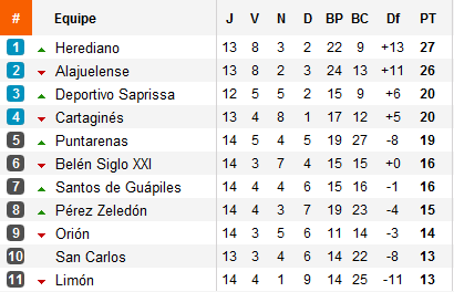 Ce passionnant chassé-croisé pourrait cependant profiter au Deportivo Saprissa, toujours placé en embuscade à sept longueurs après son nul concédé à Belén Siglo, mais qui dispose d’un match de plus à disputer et dont le week-end prochain s’annonce quasi-décisif avec la réception de l’actuel quatrième : Cartaginés.