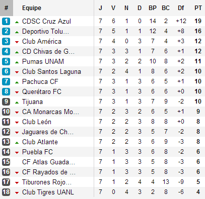 Autre point chaud, la lutte pour la survie : si Veracruz se complique la vie en s’inclinant lourdement face à Toluca, Atlante en profite pour mettre un coup de pression sur Atlas. Les Azulgranas s’imposent à Pachuca et reviennent à six points des Zorros qui n’ont pu faire mieux qu’un nul sur le terrain des Pumas. Loin de ces agitations, Monterrey continue de déprimer : les Tigres concèdent un troisième nul consécutif, ne marquant à nouveau pas (pour la cinquième fois en sept matchs) alors que les Rayados, réduits à dix après l’expulsion de César Delgado, tombent chez eux devant León. Le champion sortant en profite ainsi pour se rapprocher de la Liguilla.