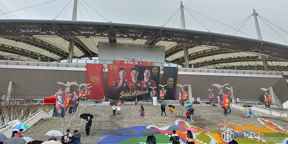 C’est également le moment choisi par la pluie pour faire son apparition et ne plus nous lâcher. Les hélicoptères de la police tournent de plus en plus au-dessus du stade afin de veiller à ce que tout se passe bien sur le parvis. Et ce, surtout du côté des Pumas. Car au final, ils sont près de 10 000 fans à avoir pris place dans leur tribune, recouvrant ainsi tout l’anneau supérieur du virage, une concentration des effectifs qui leur permettra d’être diablement efficaces et spectaculaires pendant le match. Même si la rivalité n’est pas aussi exacerbée que pour le Clásico contre Chivas, elle est la plus importante de la ville et reste encrée chez les supporteurs. Un match à gagner pour son public en somme.