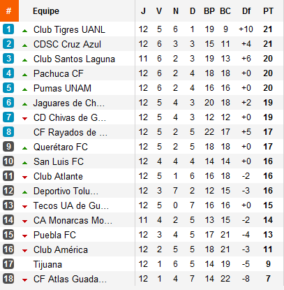 Le nouveau leader se nomme ainsi Tigres qui succède aux Jaguares et aux Pumas dans le rôle du félin de tête. Meilleure défense est troisième meilleure attaque, l’un des grands favoris de l’édition 2011 semble pourtant suffisamment armé pour conserver son leadership. Mais cette tête, ils la partagent avec la Maquina. Avec un Javier Orozco qui sonne se grand retour en s’offrant le doublé face à Puebla, Cruz Azul s’accroche.