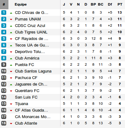Ce n'était qu'une questions de journées, toujours invaincu, Chivas prend officiellement la tête du championnat mexicain en s'offrant le choc au sommet de la journée. Derrière, les Pumas chutent et les autres favoris se replacent. Pendant ce temps, la violence frappe encore autour des stades.