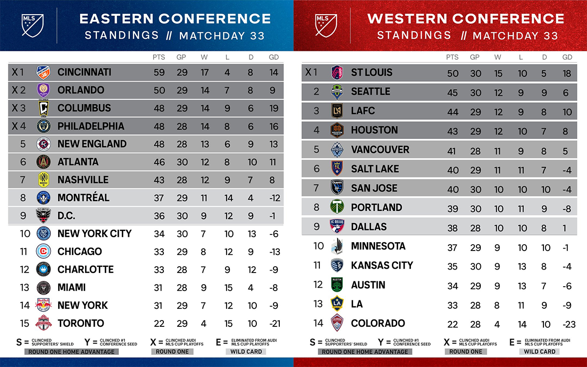 Il ne reste désormais plus qu’un mois de compétition avant les play-offs. Autant dire que la chaleur ne va cesser d’augmenter au fil des rendez-vous et la tension va s’intensifier. À l’Est, conférence la plus relevée cette saison, on connait déjà près de la moitié des qualifiés pour les play-offs. Le premier n’est pas une surprise tant Cincinnati domine outrageusement l’ensemble de la MLS. Les Orange and Blue sont même tout proches de remporter le Supporter’s Shield ayant relégué la concurrence la plus proche à neuf points et contrôlent tranquillement leur fin de phase régulière, même si la défaite face aux Lions d’Orlando à domicile début septembre, la première de la saison, est quelque peu venue ternir ce sprint final. Derrière Cincy, les écarts sont bien plus resserrés.