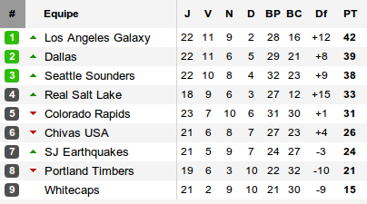 A l’Ouest, peu de changements. Dallas accroché, Los Angeles ne voit plus que le Real Salt Lake capable de lui contester sa première place. En atomisant San José (4-0), les Royals reviennent à neuf points du Galaxy avec quatre rencontres de plus à disputer. A noter aussi, le retour de Chivas qui écrase Houston et se replace dans la course au tour préliminaire.