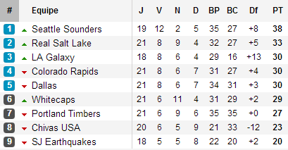 A l’Ouest, Seattle pouvait profiter de la venue du Galaxy pour assoir encore plus sa domination. Il n’en fut rien, bien au contraire. Face à un Los Angeles en grande forme, les Sounders ont explosé avec un 0-3 plié en 35 minutes, la gifle par excellence. Mais le Real Salt Lake n’en profite pas. Rattrapé par le cinquième but de Thierry Henry, les Royals et leurs deux matchs de plus que les Sounders restent à cinq points et sont, plus que jamais sous la menace du Galaxy qui a profité de la semaine pour doubler les Colorado Rapids.