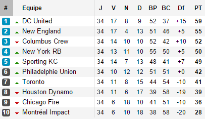 Cette chute libre aura surtout profité aux Red Bulls. Au pied des play-offs à sept journées de la fin, les coéquipiers de Thierry Henry n’ont cette fois-ci pas totalement craqué perdant même leur place de demi-finaliste direct lors de l’avant dernière journée au profit de Columbus. Finalement, à l’Est, la lutte pour les play-offs aura rapidement tourné court, le Sporting Kansas sauvant sa place après une série assez catastrophique (2 victoires seulement lors des deux derniers mois).