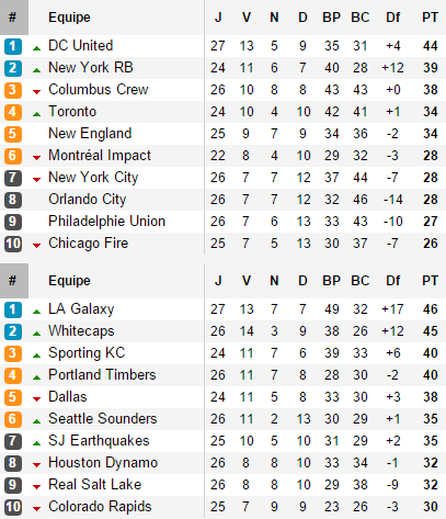 Ce qui peut sauver Orlando, c’est que la régularité n’est pas l’apanage de la plupart des équipes en MLS. Après sa série de 3 victoires, DC United s’incline pour la deuxième fois de rang, piégé à domicile par des Quakes qui venaient, trois jours auparavant, de massacrer au Sporting Park le Sporting Kansas (5-0), alors invaincu depuis 3 matchs. Mais, à l’Est comme à l’Ouest, rares sont ceux à en profiter. Les Red Bulls ne jouant pas ce week-end, Columbus se rapproche en finissant d’achever le Sporting et se retrouve à six points du leader avec 1 match de retard alors que plus loin, New England enchaine une série de quatre matchs sans défaite (3 victoires, 1 nul) pour revenir également au contact. A l’Ouest en revanche, c’est la Bérézina. Car mise à part les mal classés Colorado et Real Salt Lake et les Quakes qui recollent, aucune équipe actuellement qualifiée pour les play-offs ne s’est imposée, Seattle que l’on avait vu si conquérant face à Orlando ayant justement de nouveau trébuché face aux Royals.