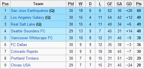 Une semaine après San José, l’Ouest officialise deux nouveaux qualifiés pour les play-offs. En signant un quatrième succès consécutif devant Toronto (avec un splendide doublé de Juninho), le Galaxy remonte à la seconde place de la conférence et se qualifie, doublant au passage les Royals de Salt Lake, qualifiés également après leur succès à domicile face à Portland (acquis suite à un concours de coup-francs à ne pas manquer dans la vidéo). Derrière, Seattle, tombé chez lui devant l’impressionnant leader San Jose, devrait également valider sa présence en play-offs dès la semaine prochaine. Ne reste donc plus qu’une place à distribuer : elle se jouera entre Vancouver et Dallas.