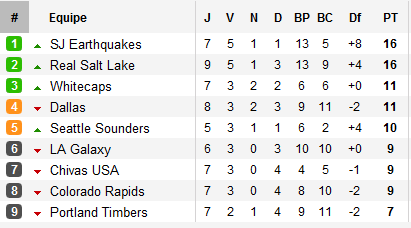 Mais l’équipe du moment en MLS reste cependant San Jose et son incroyable buteur Chris Wondolowski. En punissant les Royals du Real Salt Lake réduits à 9 avec notamment le septième but lors des cinq dernières rencontres de son buteur vedette, les Earthquake ont pris les commandes de la conférence Ouest. En embuscade, Seattle, qui n’a pas joué cette semaine, fait figure de leader virtuel alors que le champion sortant Los Angeles décroche un second succès et semble enfin décoller.