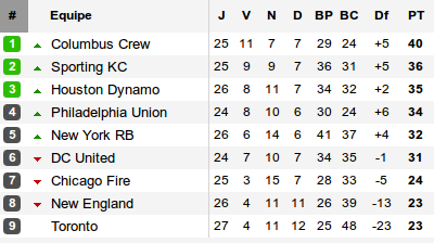 Retour aux conférence ou à l'Est, Columbus s'installe en tête en s'imposant sur la plus petite des marges devant Philadelphie. Homme du match, le péruvien et ancien marseillais Andrés Mendoza qui s'offre son huitième but de la saison pour sceller la victoire du Crew. Avec cette défaite, les Zolos perdent leur place sur le podium doublés par le Sporting Kansas et Houston, ce dernier s'imposant sur le fil face au Real Salt Lake.