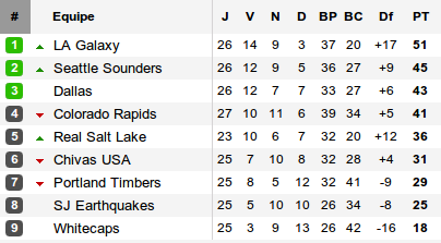 Car ce point permet à Chivas de rester collé à New York, qui, privé de Thierry Henry, n'a toujours su remporter son match. Pire, les Red Bulls s'en sortent de justesse face aux Revs grâce à un doublé de Dane Richards à trois minutes de la fin du match. Un point sépare New York de Chivas mais aussi de DC United qui n'a pas su profité de raté de ses deux concurrent pour prendre la huitième et dernière place qualificative (DC s'inclinant à Kansas City). Dans cette lutte, la belle opération est pour Portland qui s'impose devant Vancouver et revient à trois points des Red Bulls. La lutte pour les play-offs commence et le sprint final sera terrible.