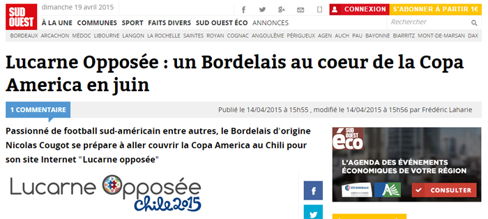 Si vous aimez nos insides et nos articles de Culture foot, le projet Lucarne Opposée – Chile 2015 (que vous pouvez suivre sur le blog dédié) est fait pour vous ! Du suivi de la Copa América en direct des stades à la plongée au cœur de l’histoire du Chili que nous vous offrirons, notre ambitieux projet vous fera vivre la plus belle des compétitions comme jamais.