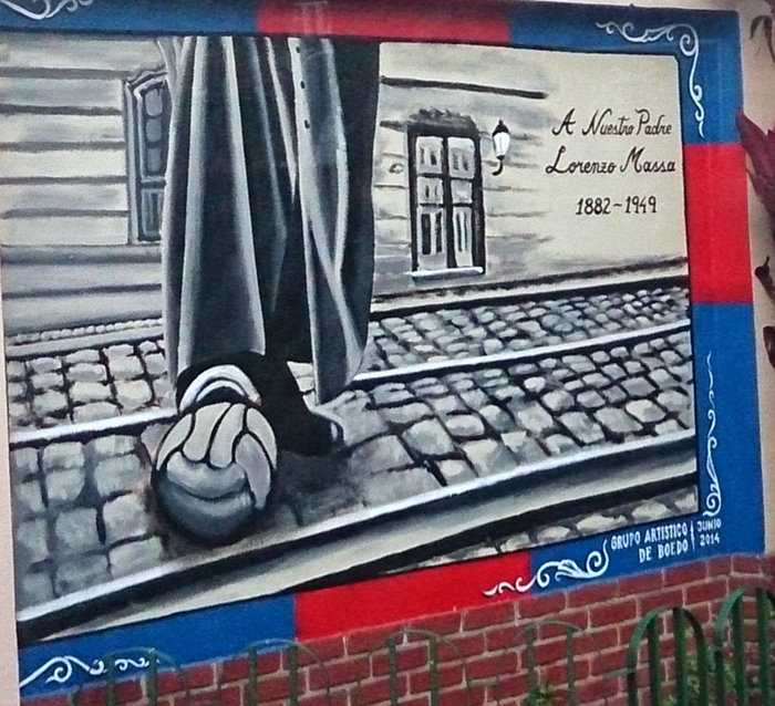 Match couperet oblige, le rendez-vous est pris cinq heures avant le coup d'envoi de la rencontre à l'angle des rues Treinta y Tres Orientales et Mexico en plein cœur de Boedo, le quartier où réside San Lorenzo. Sur la rue Mexico, nous retrouvons Matias et Lucas, deux membres de la Peña Oeste de San Lorenzo, qui seront nos hôtes du soir. « Tu te doutes pourquoi nous t'avons amenés ici ! » s'exclame Matias. En effet, ce qui est aujourd'hui la Casa Salesiana San Antonio regroupe désormais et une église où il y a 108 ans le père Lorenzo Massa fondé le club de San Lorenzo de Almagro. « A l'époque, l'arrivée au Quartier du Père Salesiano Lorenzo Bartolomé Martin Massa a été déterminante à l'heure de la fondation de San Lorenzo de Almagro. Sa vision sociale pour tirer les jeunes des dangers de la rue a été fondamentale. Ces ados ont pu croiser ce prêtre, noble et jeune, qui ouvrait son cœur et les portes de l'Oratorio San Antonio pour qu'ils puissent notamment pratiquer le football » nous confie Lucas.