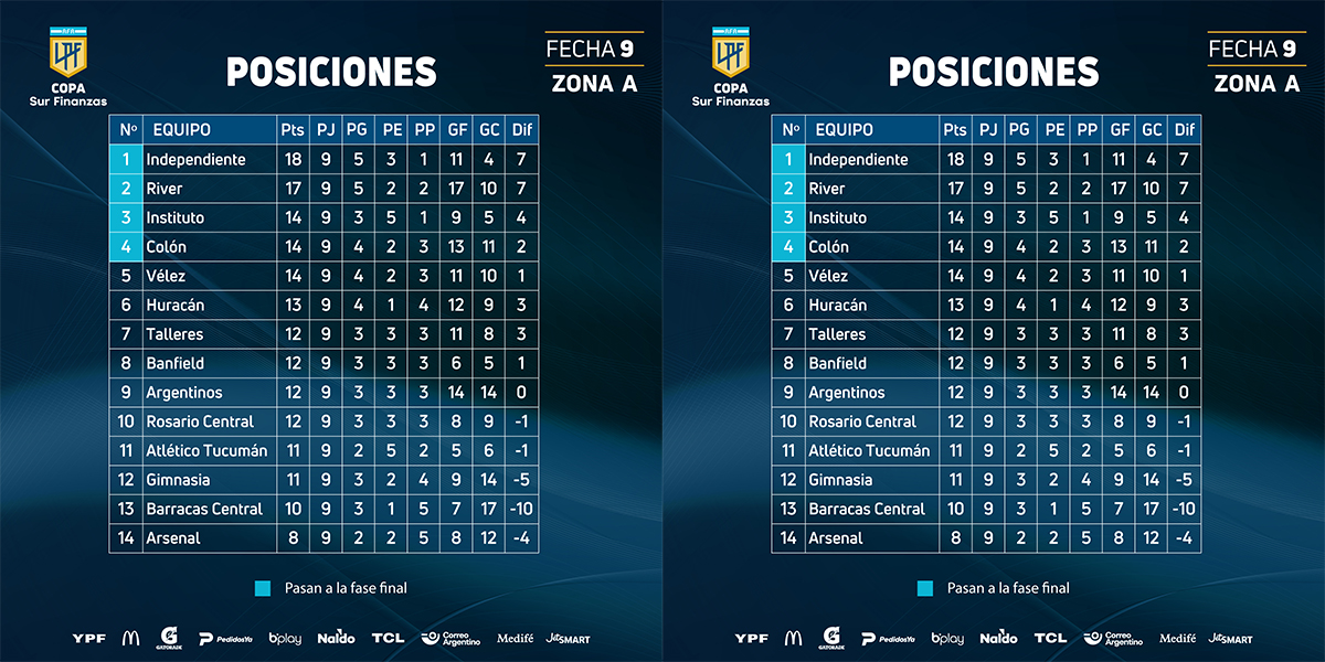 Pendant ce temps, dans un match très serré, Boca a enfin remporté les trois points après six matchs sans victoire. Almirón a trouvé son système (le 4-4-2), Boca propose enfin du jeu, mais a toutes les peines du monde à inscrire des buts malgré de belles occasions. Pourtant, Unión a joué une heure à dix. Merentiel signe son quatrième but lors des trois derniers matchs et s'affirme toujours plus comme l'homme en forme de ce Boca qui n'a qu'un seul objectif : remporter la Copa Libertadores le 4 novembre prochain à Rio de Janeiro. Dans le groupe B, Belgrano s'est imposé à Florencio Varela. Bien que largement dominé en première période par un Defensa entreprenant, le gardien pirata a contenu toutes les attaques vertes et jaunes avant de passer le relais à Passerini, qui a inscrit un doublé en moins de dix minutes, permettant ainsi aux Cordobeses de prendre seuls la tête du groupe, toujours invaincus. Pour les débuts de Zielinski à la tête du Granate, Lanús continue sans gagner. Cette fois-ci, un match nul sans but à Santiago del Estero face à Central Córdoba. Le même résultat a été enregistré entre Banfield et l'Atlético Tucumán, l'équipe de Falcioni se situant à seulement quatre petits points de la zone de relégation.