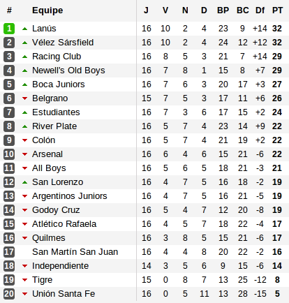 Tout cela aura été permis par les deux surprises de la journée : chez lui, le leader Vélez est tombé devant un Boca annoncé moribond sur un but de son ancienne star Santiago Silva, alors que Newell’s, forteresse imprenable s’est pris les pieds dans le tapis face à All Boys, concédant ainsi sa première défaite de la saison. Conséquence, tout est relancé. Lanús et Vélez comptent désormais trois points d’avance sur un autre duo composé de Newell’s et du Racing, auteur du carton de la semaine face à Quilmes qui sombre dans la zone rouge. Derrière, si rien n’est perdu pour Boca et Belgrano, le retard respectif de cinq et six points semble trop important à combler.