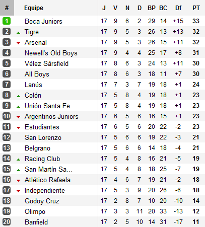 | Banfield | 73 | 47 | 22 | 142 | 112 | 1.268 |