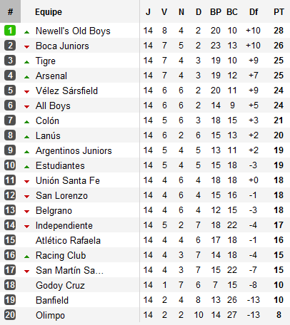 On se doutait que le choc Boca – Vélez, clôture de la quatorzième journée du Clausura 2012 allait profiter à Newell’s. Ceci, encore plus après la facile victoire de la Lepra sur l’Unión Santa Fe avec au passage le sixième but du jeune Maximiliano Urruti. Ainsi, au coup d’envoi du choc au sommet de la journée, les hommes de Gerardo Martino comptaient trois longueurs d’avance sur Boca, rejoint à la seconde place par Tigre, parvenu, à dix contre onze, à sauver le nul à Colón et par Arsenal, écrasant vainqueur de San Martin.