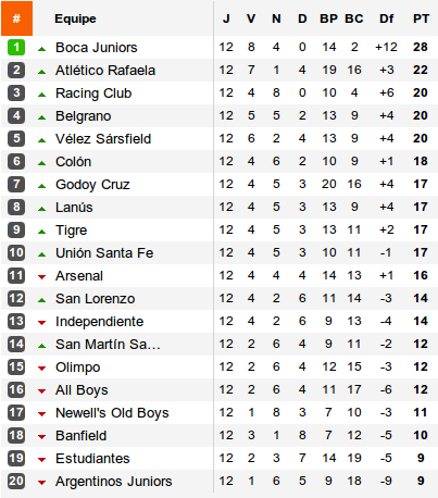 Le Racing, lui aussi invaincu, est accroché par Lanús, tombe à huit points du leader et voit le surprenant Atlético Rafaela lui passer devant. L'étonnant promu ne met qu'une mi-temps pour dominer Argentinos, reste à six longueurs de Boca et confirme une tendance déjà amorcée lors du dernier tournoi : les promus sont au niveau. Car derrière Rafaela, Belgrano joue également le titre après son succès acquis sur la pelouse de Tigre, pointant à huit points de Boca accompagné par le grand revenant : Vélez, sorti vainqueur du duel opposant les deux derniers champions face à Estudiantes. Rafaela, Vélez : voici les deux prochains rendez-vous qui attendent Boca Juniors. Autant dire que le titre se jouera lors de ces 180 minutes que Racing suivra avec attention avant, à son tour, de défier le leader.