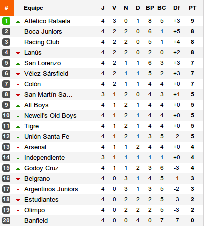 Pour sa seconde saison de son histoire en Primera A, le champion de Primera B, l'Atlético Rafaela surprend tout le monde et prend les commandes. Car derrière, les favoris ont coincé.