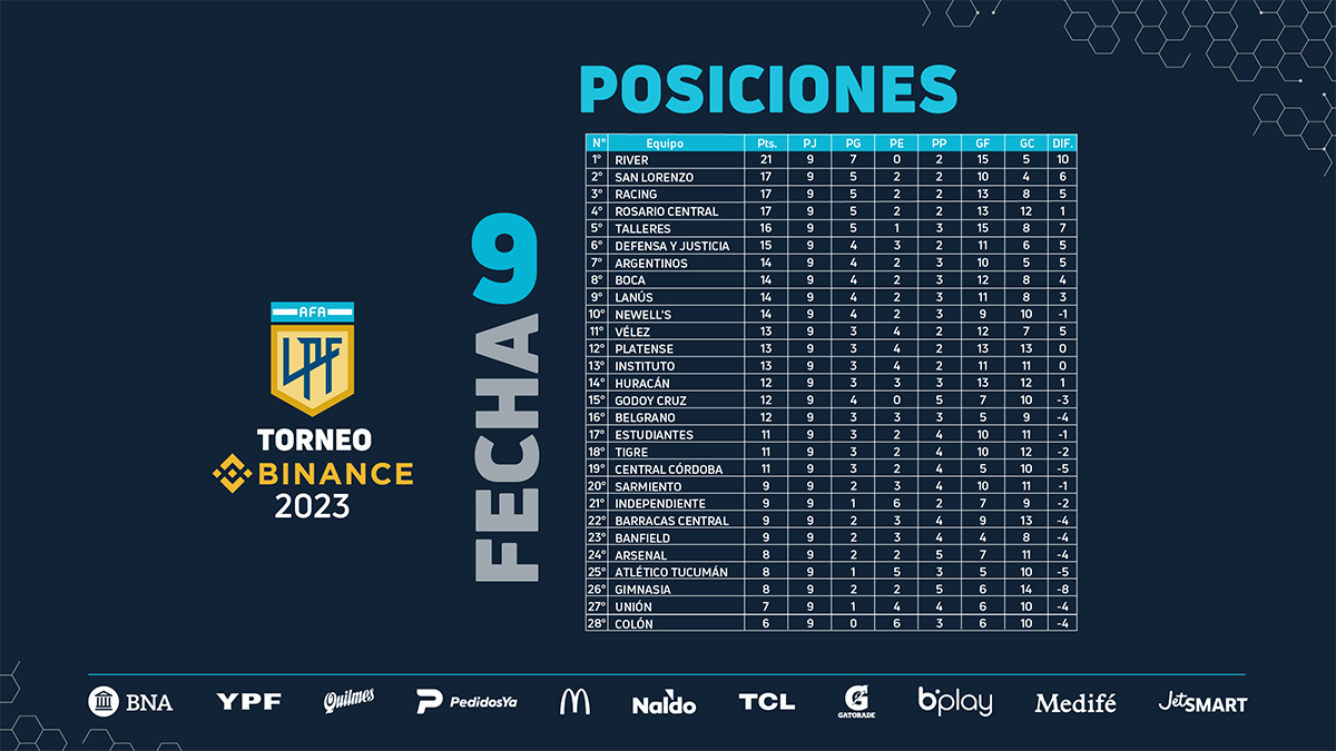 Si River continue tranquillement sa course en tête, un trio composé de San Lorenzo, Racing et Central reste aux aguets. Boca se reprend, et les clubs santafesinos sont bons derniers.