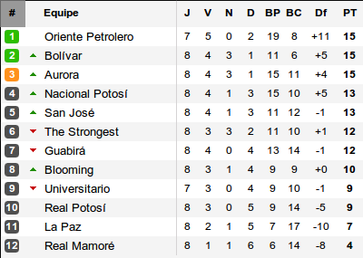 Au final, il n’y a plus que trois points entre Oriente Petrolero et le septième Guabirá. Sept des douze équipes en trois points : dire que le championnat bolivien est indécis est un euphémisme.