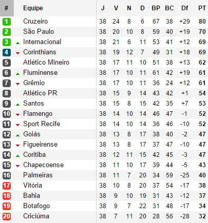 Avec le maintien de Palmeiras, la relégation de Vitória et Bahia, le championnat 2014 a donc délivré son dernier verdict. En s’imposant à Figueirense, l’Inter a assuré sa place au second tour de la Libertadores, forçant les Corinthians à un tour de barrage face à un colombien (qui pourrait être Santa Fe). Pendant ce temps, Cruzeiro remporte une dernière victoire avec une ultime merveille de Marcelo Moreno et malgré le 18e but de Fred, sacré meilleur buteur de l’édition 2014.