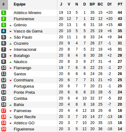 Conséquence, un troisième larron se mêle à la lutte pour le titre. Conduit par Vanderlei Luxemburgo le Tricolor signe 3 succès consécutifs, le dernier contre un Vasco en pleine déconfiture (quatre défaites lors des 5 derniers matchs), et revient à quatre point du leader, fixant son avance à cinq points sur le quatrième Vasco.