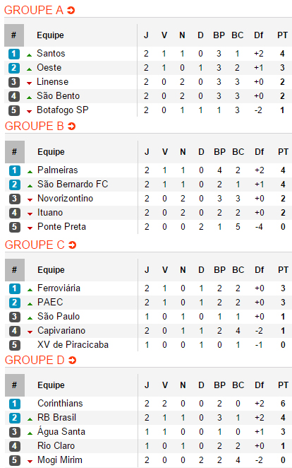Le Corinthians a enchaîné une deuxième victoire consécutive, à nouveau sur le score de 1-0. Uendel a marqué le seul but de la partie face à un Audax assez inoffensif et peu entreprenant. Santos s'est imposé 2-0 sur le terrain de la Ponte Preta, avec à nouveau un Gabriel Barbosa inspiré. Déjà auteur du seul but du Peixe lors du match d'ouverture, le jeune attaquant de 19 ans a cette fois-ci délivré une passe décisive pour Ricardo Oliveira, avant de marquer sur penalty.