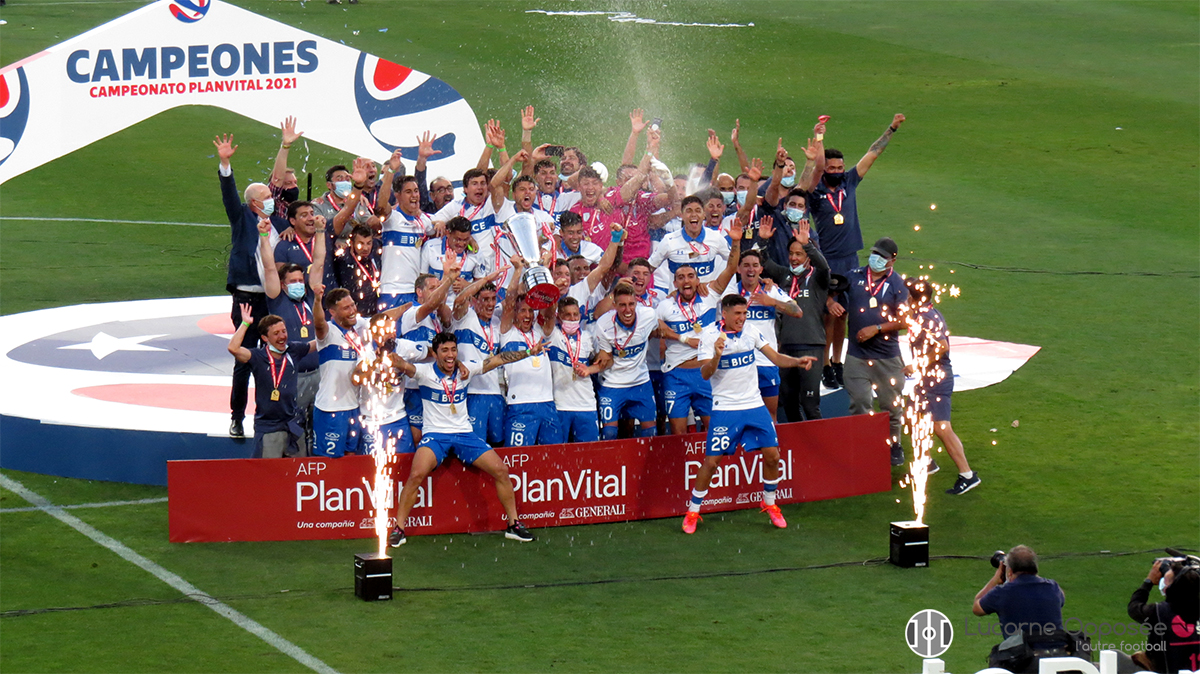 Une fois le match débuté, ce sont les joueurs d’Everton qui se sont montrés en premier dangereux grâce au Panaméen Watermann qui, sur un contre, mettait le ballon à côté. Mais il était difficile de penser que le champion allait se contenter du match nul pour célébrer avec ses supporters, lui qui a fini avec la meilleure attaque du championnat. C’est sur un corner que le premier but est arrivé de la tête d’un joueur de Viña del Mar, Julio Barroso, un ancien de Colo-Colo, en marquant malencontreusement contre son camp. Il dira après le match que les Colocolinos lui avaient demandé en masse de marquer lors du match, mais qu’ils n’avaient pas précisé le côté. Ce même Barroso aurait pu se faire expulser pour un vilain tacle sur Zampedri, mais l’arbitre de la rencontre a joué la clémence en ne brandissant qu’un carton jaune. Ensuite, s’installa un faux-rythme qui nous laissait présager une deuxième mi-temps assez ennuyeuse. Ce ne fut pas le cas, puisque d’une part, les locaux ont tenté d’égaliser, en poussant (un petit peu) et en tentant d’exploiter des contres. Mais la Católica a appuyé sur le champignon en marquant sur coup-franc par Felipe Gutiérrez puis par Alfonso Parot très en vue ces dernières semaines. 3-0, résultat final, un score largement suffisant pour le célébrer le tetracampeonato, le premier sur des tournois longs. Un succès que le club de San Carlos de Apoquindo doit principalement à Cristian Paulucci, l’ancien scout devenu entraineur presque par hasard et qui a réalisé un quasi sans faute avec quatorze victoires sur ses quinze matchs à la tête de l’équipe après le limogeage de Gustavo Poyet. La suite de la nuit aura été longue et festive, tant pour les joueurs que pour les supporters présents en masse, tout comme ceux restés chez eux à Santiago.