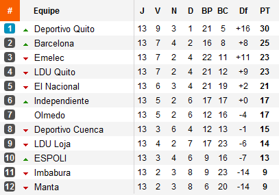 Après avoir accroché, à neuf contre onze, son ennemi de toujours, la LDU crée l’exploit en s’imposant à la Casa Blanca devant le Deportivo Quito lors du match en retard de la 11e journée disputé trois jours après le large succès acquis face à l’autre LDU. Héros du match, l’inévitable Hernan Barcos qui frappa à 25 minutes du terme de la partie.