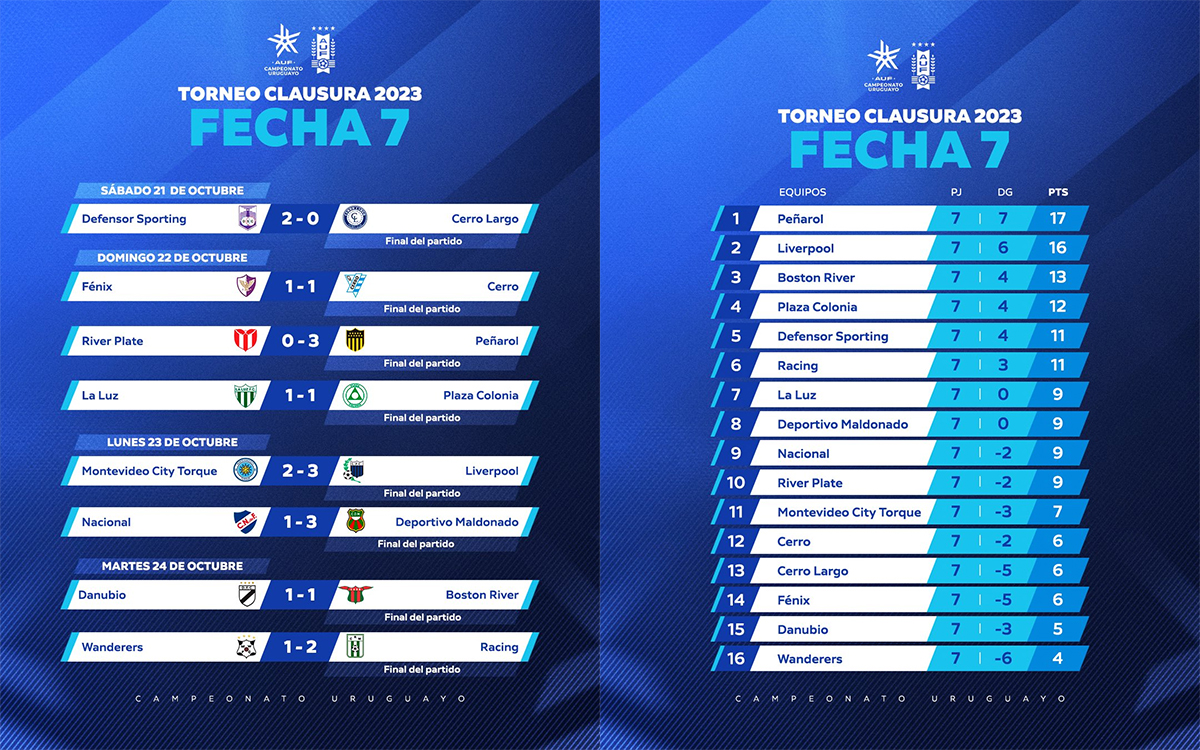 Peñarol et Liverpool se détachent avant de s’affronter ce week-end pour ce qui sera l’un des chocs de la saison. Nacional s’écroule et change d’entraîneur, laissant la main à un certain Álvaro Recoba, qui échoue sur son premier match. La première division tourne à plein régime en Uruguay et la fin de saison se rapproche.