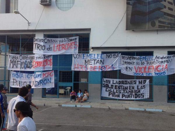 Encore plus au Nord, en Equateur, la paranoïa envahit les fans d’Emelec. Il faut dire qu’il semble que tout soit fait pour que ceux-ci le deviennent, en tout cas, pour qu’ils deviennent amateurs de théories du complot. Ils avaient crié au scandale, et leur entraîneur le premier (il avait pris des matchs de suspensions) après le choc perdu face à la LDU dans des conditions un petit peu particulières au niveau de l’arbitrage, ils ont fait encore mieux le week-end dernier face à un autre prétendant au titre Independiente del Valle. Emelec a perdu 1-0 sur un penalty un petit peu limite, on va dire qu’en Angleterre ça ne se siffle pas, un but refusé à Miller Bolaños, une merveille de but pour un hors-jeu qui n’existe pas non plus et ensuite ce Miller Bolaños, le génial attaquant du Bombillo sera exclu pour une main inexistante au vue des images (il est évident qu’il met la tête). Et donc, il n’en fallait pas plus pour que la barra locale, la Boca del Pozo affiche son soutien à la fédération équatorienne. Je ne vous traduis pas ce qu’il y a sur les banderoles, dites-vous juste que c’est que de l’amour. Pendant ce temps, anciens dirigeants, anciens joueurs et autres consultants passent partout dans les médias locaux pour souligner la nullité des arbitres locaux et l’impunité dont ils bénéficient…tiens, ça me rappelle vaguement quelque chose…