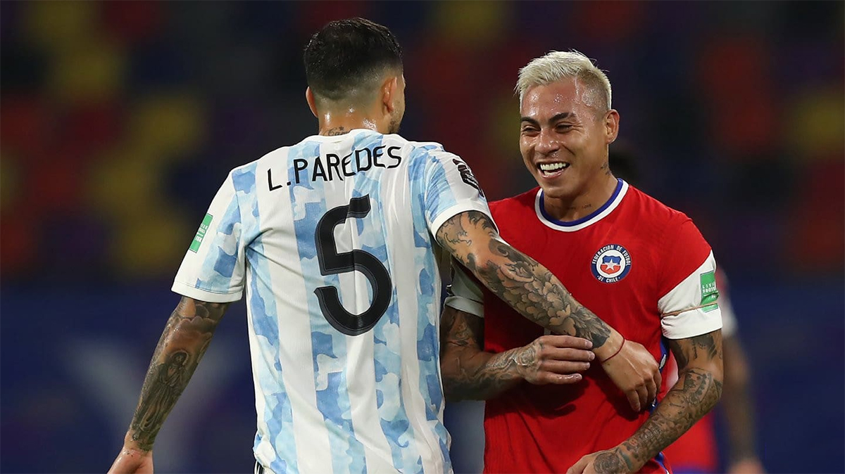 Des points, l’Argentine en a également laissé sur le bord de son chemin. À Santiago del Estero, l’Albiceleste accueillait le voisin chilien dirigé par Martín Lasarte qui débutait de manière officielle à la tête d’une sélection dont il n’avait dirigé qu’une équipe bis lors d’un amical face à la Bolivie. Privée d’Armani et Montiel, toujours positifs à la COVID-19, et d’Agüero, pas positif mais encore un jour supplémentaire à l’isolement – sans doute pour respecter les protocoles sud-américains efficaces à 99% (sic) – la sélection argentine a donc buté sur un Chili, lui aussi privé de quelques cadres, en particulier son Rey qui, toujours dans cette idée de respecter les protocoles sanitaires à profité d’un retour au pays pour visiter l’hôpital. Un match qui pourrait être résumé par un duel magnifique entre Leo Messi et Claudio Bravo, duel remporté par le portier chilien qui a tout sorti à l’exception d’un penalty en première période. Mais un match qui a livré d’autres enseignements. D’une part que cette Argentine annoncée joueuse sur le papier a eu du mal à imposer son jeu en première période d’un match à très haute intensité et riche en impact. L’ouverture du score consécutive à un penalty évident pour une faute de Maripán sur un Lautaro Martínez qui probablement définitivement enfilé le costume de n°9, mais qui a requis l’intervention du VAR a un temps changé la donne, l’Argentine passant du 4-3-3 au 4-4-2 afin d’exploiter les contres par la mobilité de son milieu et la capacité du duo Paredes – De Paul à construire les offensives, mais manquant de profondeur et laissant trop d’espaces dans l’entrejeu qui ont été parfaitement exploités notamment par l’autre duo du milieu, Aranguíz – Pulgar. L’égalisation rapide d’Alexis Sánchez – son premier but en éliminatoires face à l’Argentine – avait permis au Chili de Lasarte de gagner en confiance, à la pause, le nul semblait finalement assez logique. Lionel Scaloni sentait quelques faiblesses dans son onze, à la pause, Lisandro Martínez et Ángel Correa entraient en piste, ce dernier se montrant bien plus dangereux qu’un Ocampos étonnamment discret. Mais le début de second acte voyait surtout la Roja exploiter les espaces au milieu, jouant parfaitement entre les lignes, profitant des montées dans les couloirs, en particulier de Mené, hyper actif à gauche, et si Edu Vargas s’était montré plus inspiré, les visiteurs auraient pu générer bien des dangers. Il n’en fut rien et au fil des minutes, le duel à distance entre Messi et Bravo a pris de l’ampleur. Le portier chilien a fini par se muer en sauver d’une Roja qui a fini la partie en subissant face à une Argentine nouvelle génération après notamment les entrées de Julián Álvarez, Nahuel Molina (quatrième débutant présent sur le terrain) et Exequiel Palacios. Mais au final, rien ne fut marqué, l’Argentine laisse filer deux points, sans doute avec une étrange sensation : celle que l’on commence à basculer dans une nouvelle génération qui devrait l’emmener vers 2026, mais aussi celle qui veut qu’elle dépende toujours autant de son Messi. Côté Chili, les débuts de Lasarte sont réussis : sa Roja a montré de la personnalité et quelques mouvements intéressants mais surtout, elle ramène un point de l’autre côté des Andes pour la première fois depuis dix-huit ans.