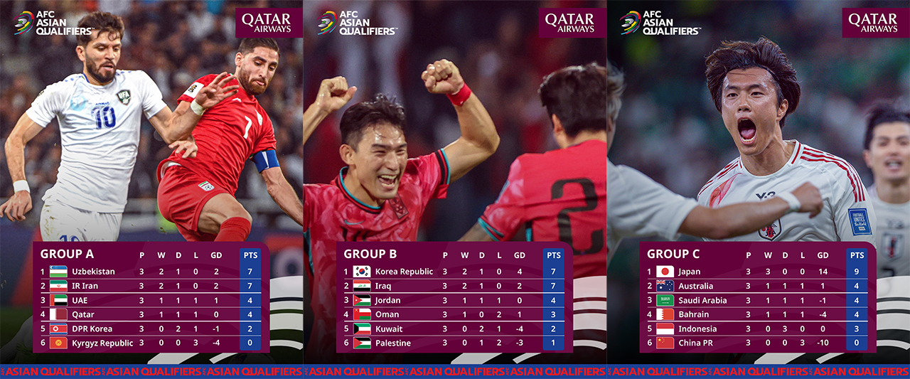 Retour aux affaires pour les sélections asiatiques dans leur quête d’un ticket pour la prochaine Coupe du Monde. Après trois matchs disputés, des équipes se détachent en tête de chaque groupe et prennent une petite option sur une qualification.