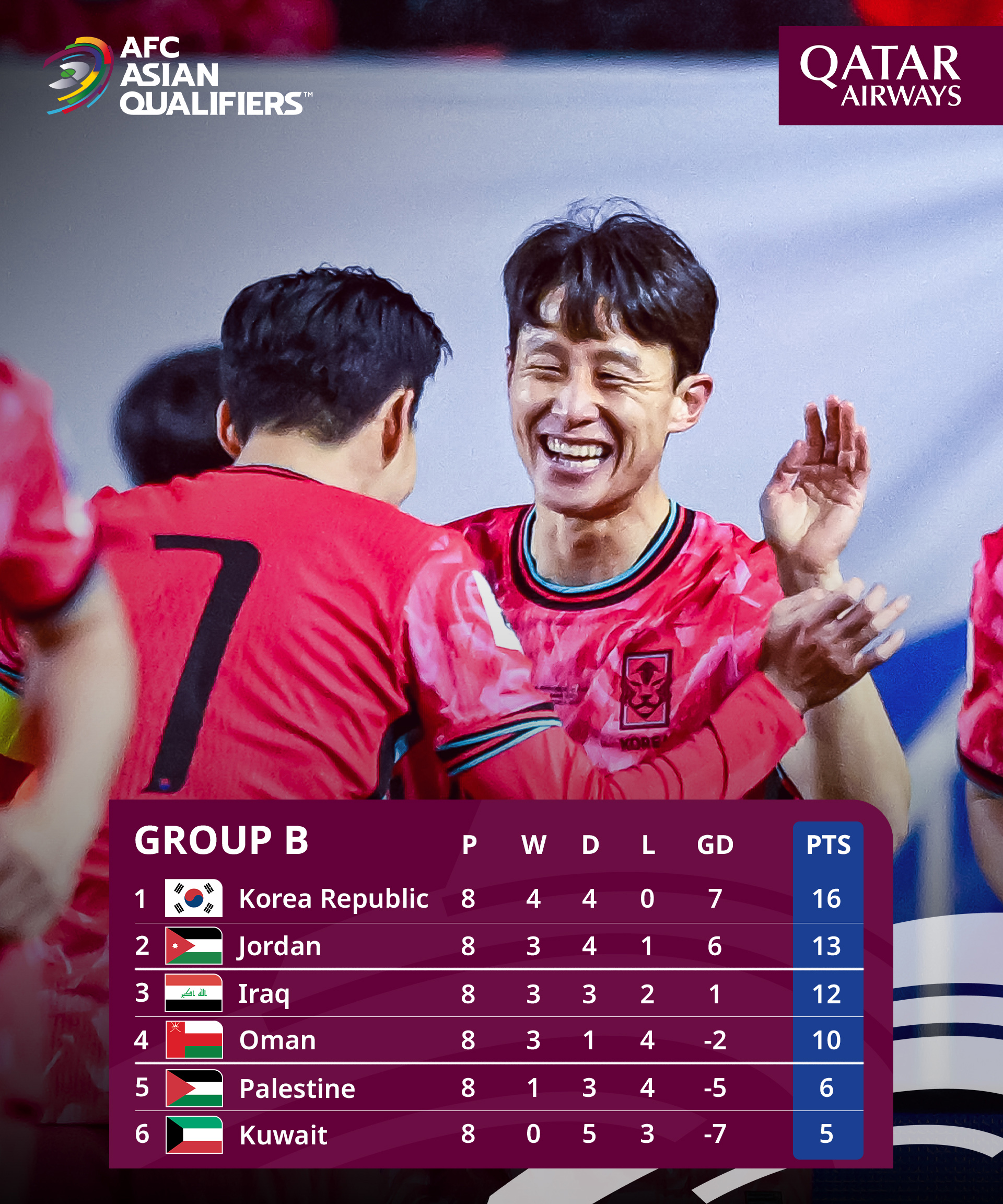 Nouvelle désillusion pour les Guerriers Taeguk à domicile. Après la piètre prestation face à Oman, la Corée du Sud n’est pas parvenue à se défaire de la Jordanie. Pourtant, elle avait rapidement ouvert le score grâce à Lee Jae-sung sur corner. Mais une erreur de Park Yong-woo combiné à un Jo Hyeon-woo peu inspiré, ont permis aux Jordaniens d’égaliser sur l’une de leur seule occasion. Bien que la prestation globale ait été meilleure, les hommes de Hong Myung-bo ont de nouveau manqué de rythme, de vitesse et d’automatisme. Très peu de progression observée et une équipe qui continue de déjouer devant son public : une seule victoire et trois nuls depuis le début des éliminatoires. La Corée du Sud reste néanmoins en tête du groupe et n’a besoin que d’une victoire pour se qualifier. Mais derrière, tout se resserre.