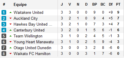 Et le départ de championnat ne semble pas parti pour démontrer le contraire. Trois matchs pour autant de victoires, le champion sortant Waitakere n’a toujours pas encaissé le moindre but et signe la troisième journée par un cinglant 5-0 sur Young Heart Manawatu. De leur côté, les hommes de l’espagnol Ramon Tribulietx sont freinés lors de cette journée par l’actuel troisième du championnat Hawkes Bay alors que Canterbury et surtout Wellington accusent déjà du retard.